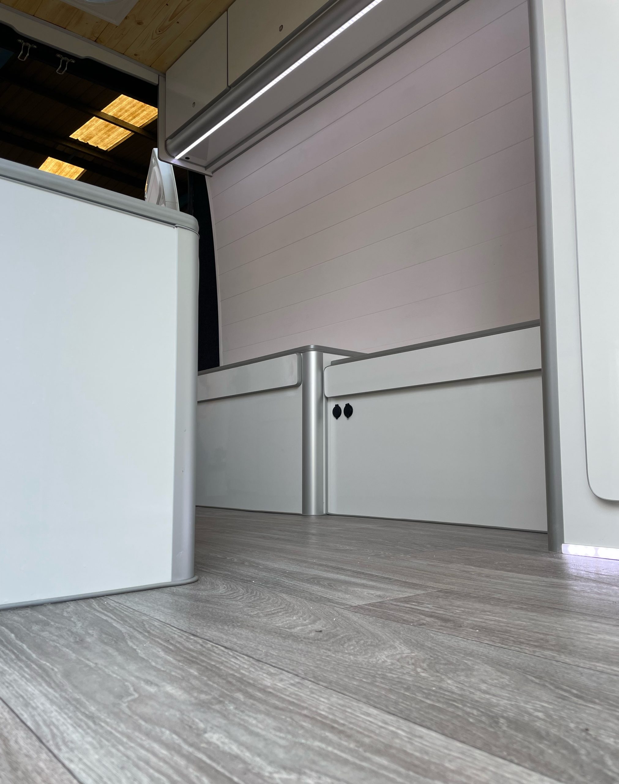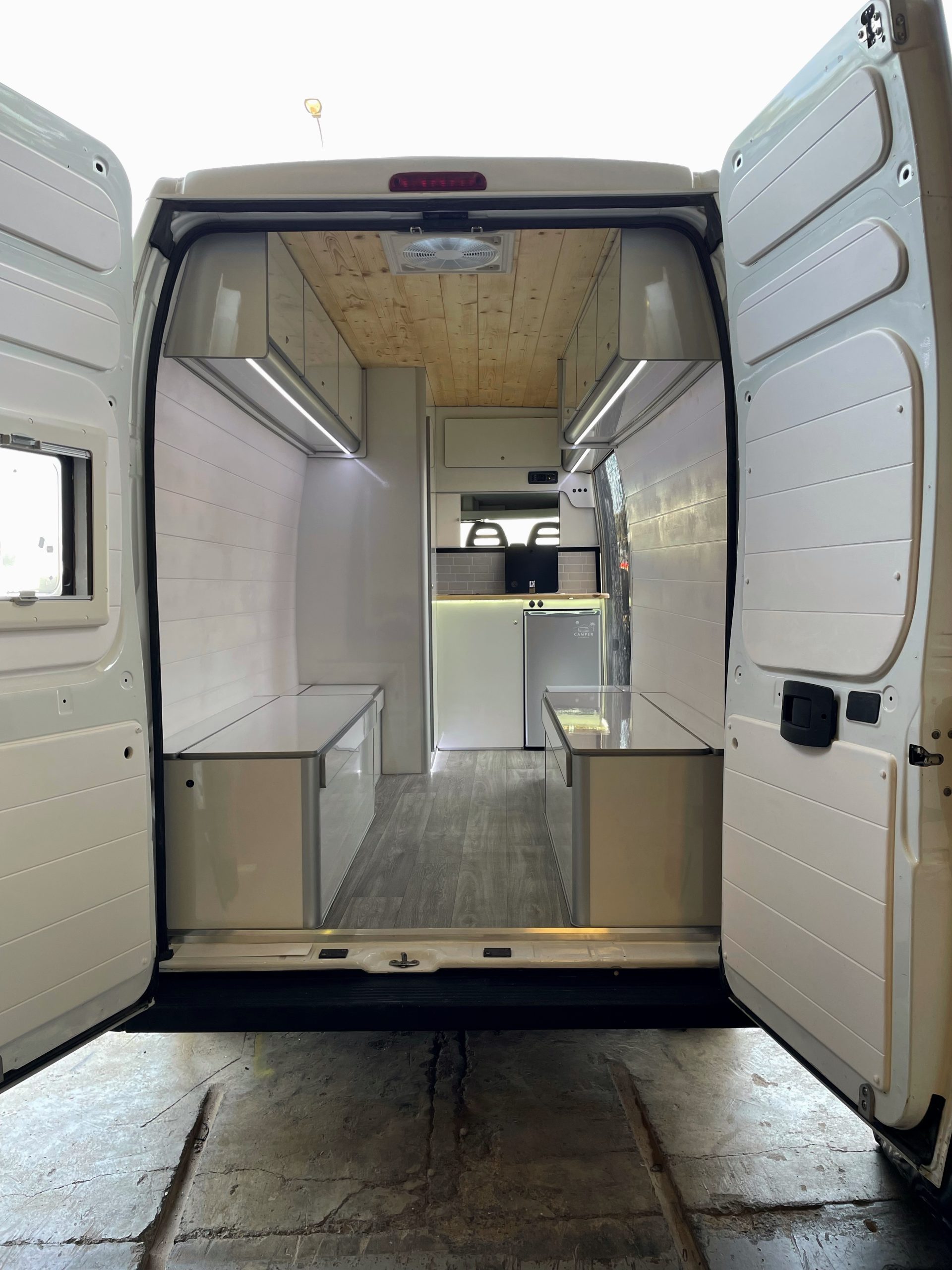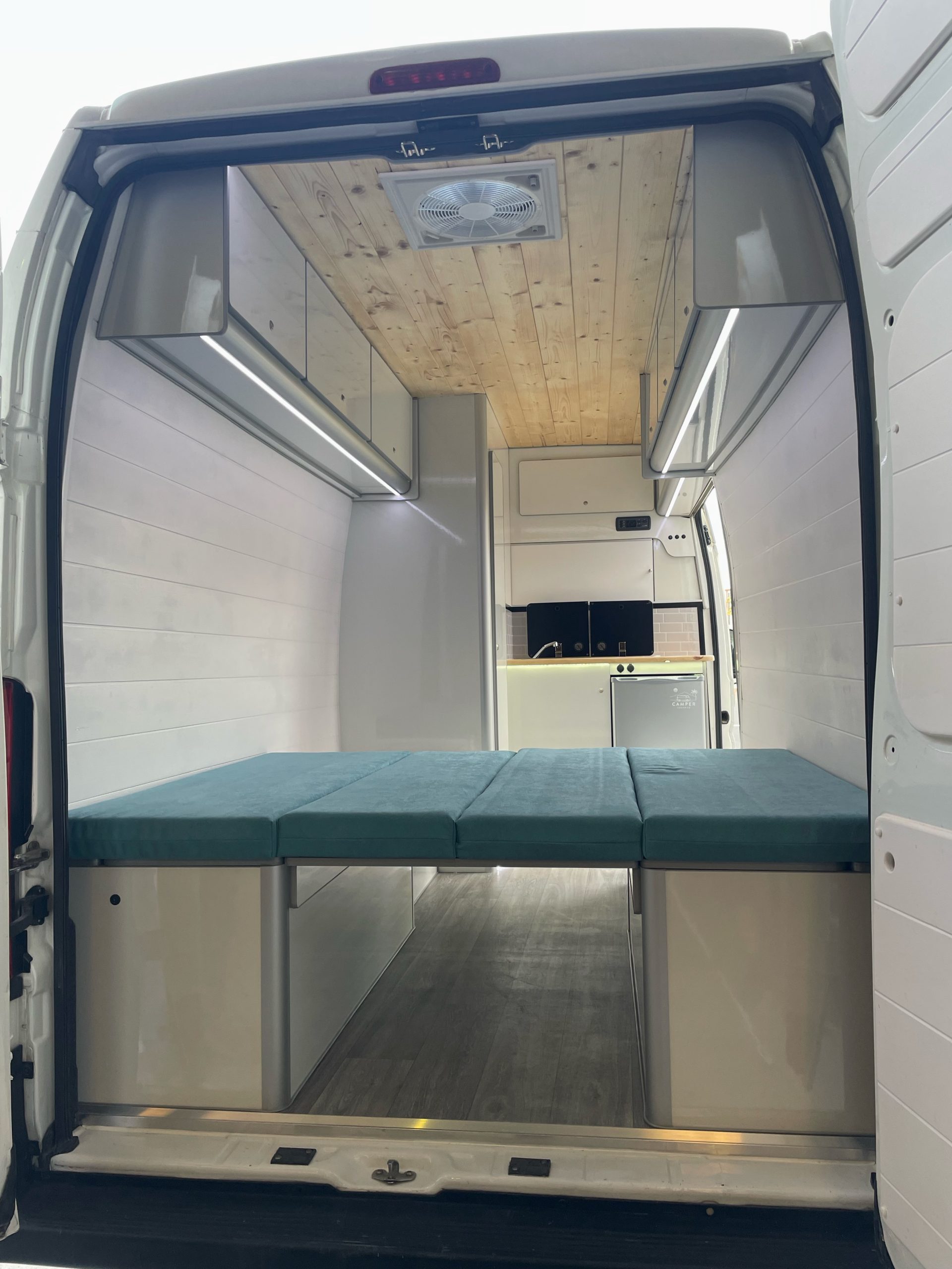 Aislamiento térmico y acústico / Suelo de madera con Aislamiento y parquet vinílico / Claraboya / Fontanería completa con bomba de agua a presión, tomas de llenado de agua exterior y toma de ducha / Segunda batería con instalación / Placa solar con instalación / Nevera de 12v (*posibilidad de aumentar capacidad) / Fregadero completo con mueble cocina y grifo / Mobiliario y revestimiento del vehículo definido en modelo 3D / Muebles en altura / Cabina de ducha completa / Ventanas en caso de no disponer el vehículo de ninguna / Ventana con oscurecer y mosquiteras / Cama con colchones viscoelástico.